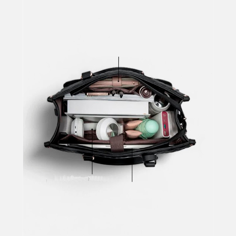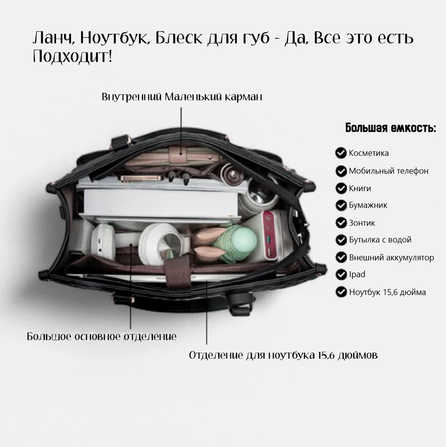 Нужно место, куда можно положить самые необходимые вещи? В маленький карман на молнии можно положить телефон, ключи или визитные карточки, а открытые карманы для хранения обеспечивают легкий доступ к зарядным устройствам, ручкам и многому другому. Носите сумку так, как вам удобно, с помощью ремешка через плечо — идеально для тех, кто любит путешествовать налегке. Если вы направляетесь в офис, на встречу или просто на прогулку, эта сумка станет вашим стильным, функциональным и удобным решением.